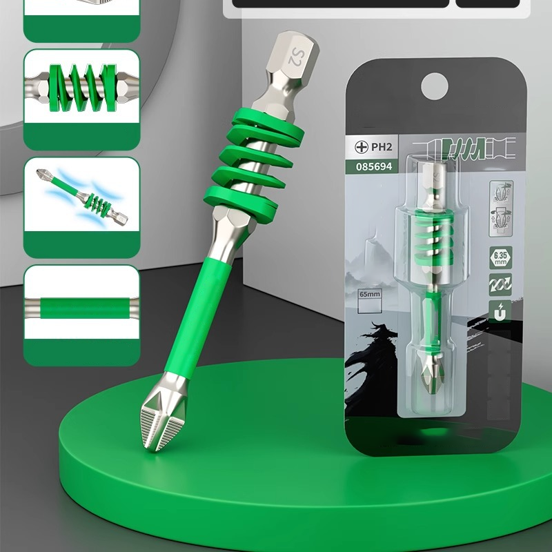 SPRING & MAGNETIC DESIGN – Spring mechanism allows for easy one-handed bit replacement, improving workflow efficiency. Strong internal magnets secure screws firmly in place, simplifying screw alignment and insertion.