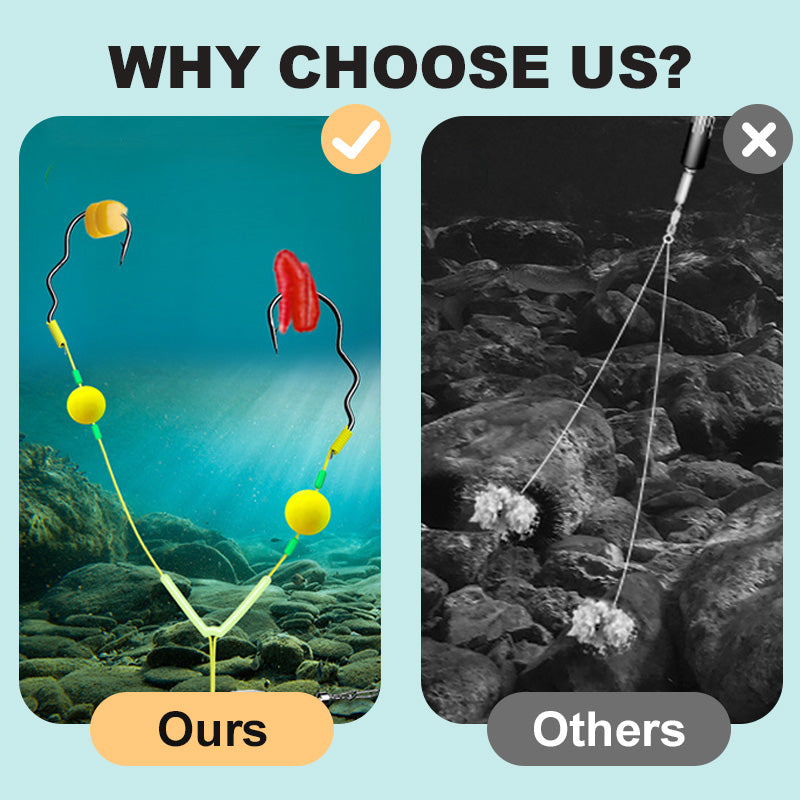 VERHEDDERUNGSFREIE PERFORMANCE – Dank der patentierten Haken-Trenntechnologie trennen sich die Doppelhaken zuverlässig, wodurch Schnurdrall und Knotenbildung deutlich reduziert werden. Mit Nylon-/PVC-beschichteten Gelenken und Gummischutzteilen für ein geschmeidiges, störungsfreies Einholen.